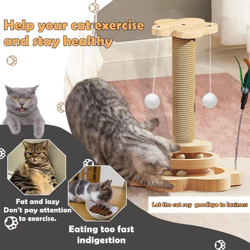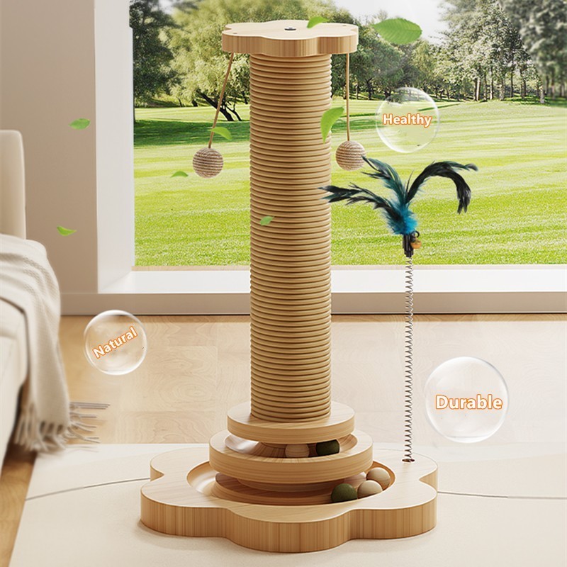 - Built for Long-Lasting Daily Use: Solid wood base, durable sisal fiber, and tough spring toys ensure it holds up to active play.