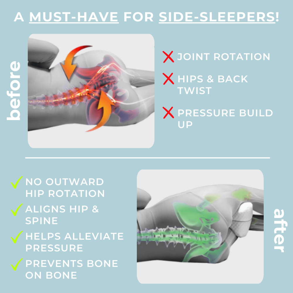 SleepEase™ gently positions your legs to relieve pressure on your spine and hips, allowing your body to rest and recover naturally throughout the night. You'll feel the difference from the very first use.